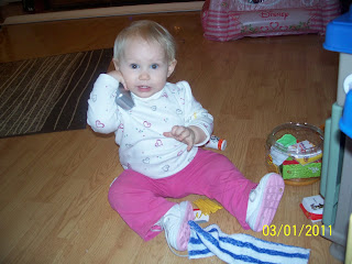 She was quite happy to see all the pots and pans, play food (which she tried to eat!) and loves the noises on her little stove.